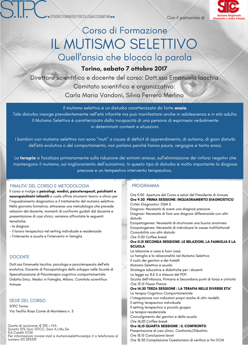 Per informazioni inviare mail a mutismoselettivo@stpc.it o telefonare al numero 011.595319